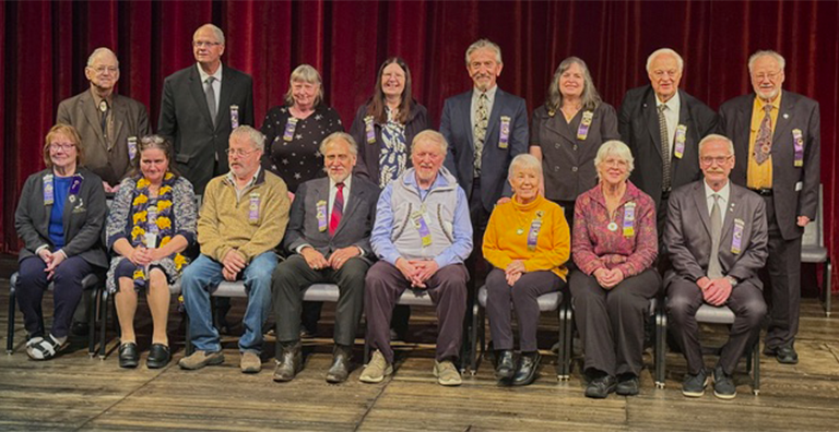 Back Row (Standing L-R): Ken Odsather (Historian), Jim Plaquet (1 Yr Trustee), Lorinda Kassner (Chaplain), Dawn Campbell (Secretary), Jeremiah “Doc” Myers (Sgt. at Arms), Virginia Calloway (1 Yr. Trustee), George Lounsbury (2 Yr. Trustee), Ken Pysz (3 Yr. Trustee) |